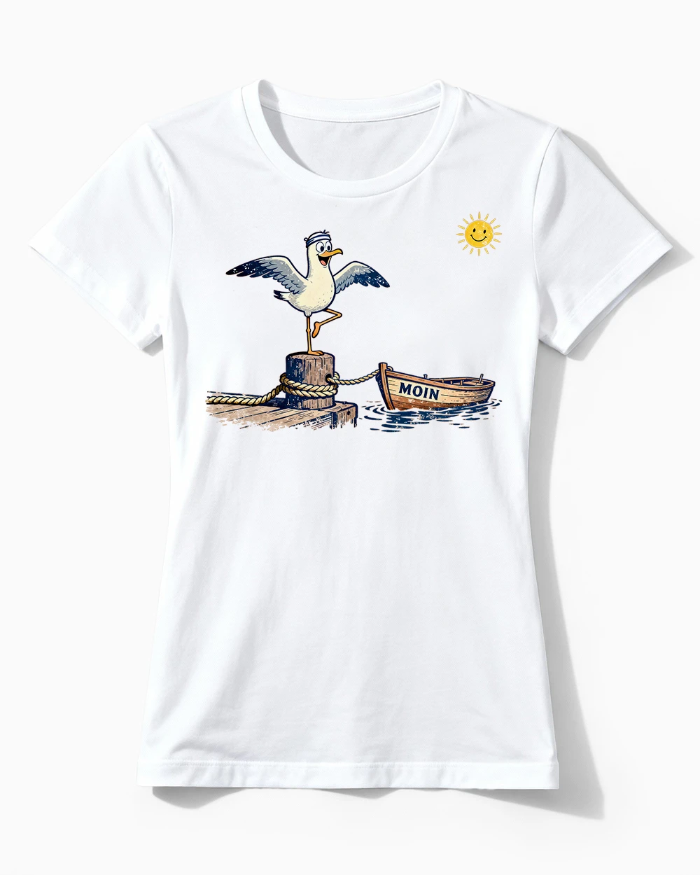 Küsten-Yoga Möwe | Maritimes Moin-Damenshirt für entspannte Küsten-Perlen