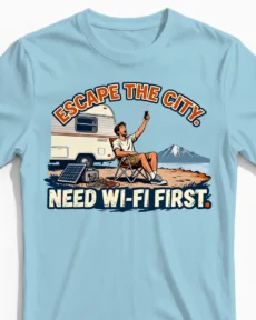 Tags: Need Wi-Fi First Herren T-Shirt, Escape the City, Camping Herrenshirt, Digitaler Nomade, Lustiges Herrenshirt, WLAN Suche, Geschenk für Camper, Wohnwagen Motiv, Kein Netz, Outdoor Ironie, Powerstation Solar, Smartphone Sucht, Roadtrip Outfit, Vanlife Humor, ITler Camping, Workation Kleidung, Retro Design Männer, Vintage Caravan, Glamping Herren, Abenteuer mit Internet, Technik Junkie, Männertag Geschenk, Wohnmobil Witze, Offgrid Humor.